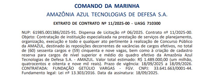 Saiu atualizações sobre o Concurso Amazul! O novo concurso da Amazônia Azul Tecnologias de Defesa — Amazul está com banca definida, a Fundação Getúlio Vargas – FGV foi a escolhida. O próximo edital pode contar com 59 vagas, bem como formação de cadastro reserva.