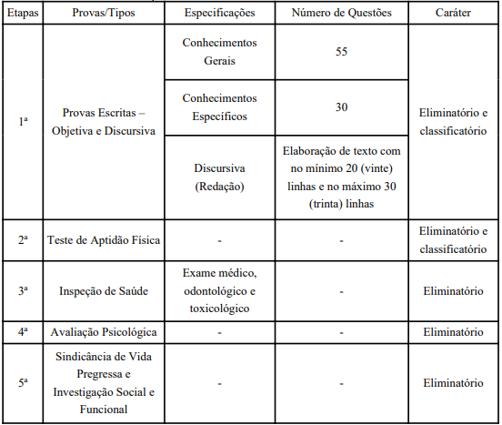 | Data da prova objetiva | 29 e 30 de novembro e 06 e 07 de dezembro |