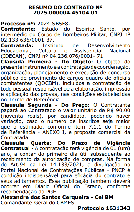 O concurso Bombeiros do ES está próximo! O Corpo de Bombeiros Militar do Espírito Santo escolheu a banca IDECAN para organizar seu próximo certame, que ofertará 6 vagas imediatas para Oficial Combatente. Além disso, foi publicado, no dia 01 de setembro, o Termo de Referência do certame.