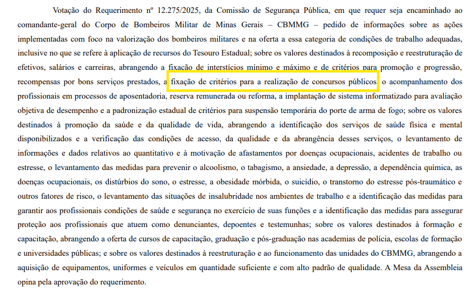 - 23/09/2025: ALMG envia requerimento sobre previsão de novos concursos