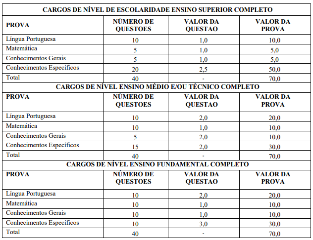 - Taxa de inscrição: R$ 120,00 (Nível fundamental) |R$ 150,00 (nível médio) | R$ 180,00 (nível superior e técnico)