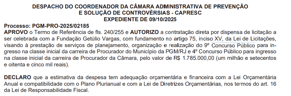 Resumo do edital Câmara RJ
