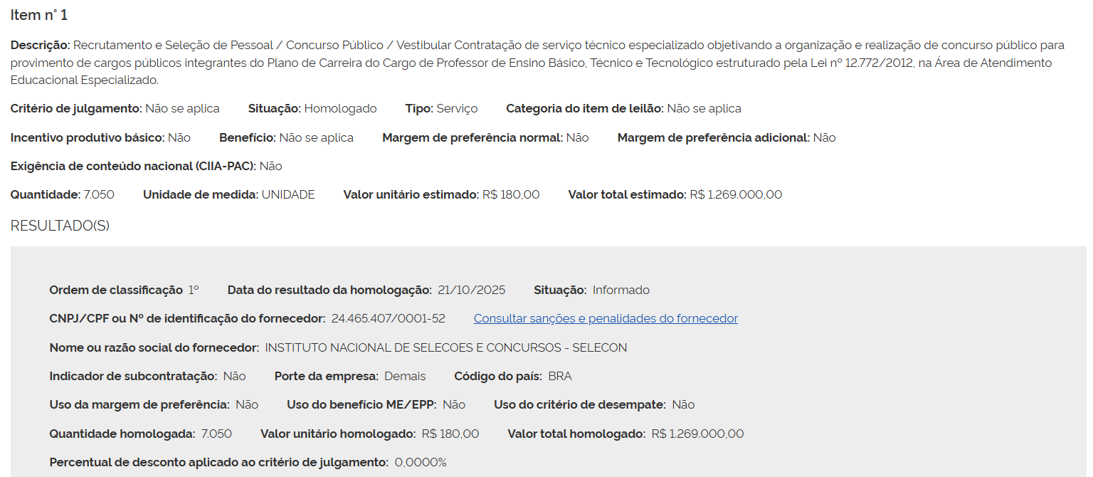 O extrato de contrato homologado foi divulgado no PNCP (Portal Nacional de Contratações Públicas), na data de 21 de outubro de 2025, oficializando a escolha. Confira aqui!