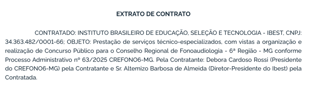 O Concurso CREFONO 6 teve atualizações! O Conselho Regional de Fonoaudiologia da 6ª Região, oficializou a escolha da banca organizadora para o seu próximo certame por meio da publicação de um extrato de contrato no Diário Oficial da União em 13 de janeiro de 2026.