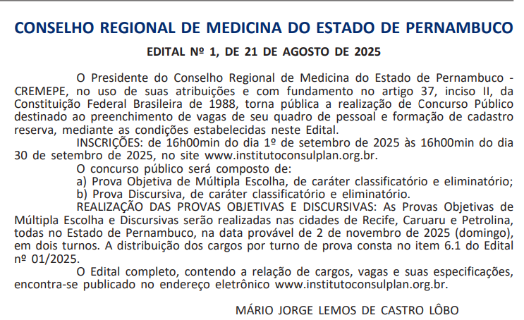 Clique aqui para ver o edital resumido CREMEPE 2025
