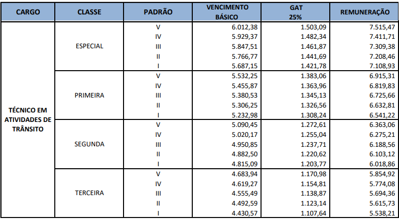 Confira a tabela detalhada a seguir, contendo os vencimentos do cargo de Técnico: