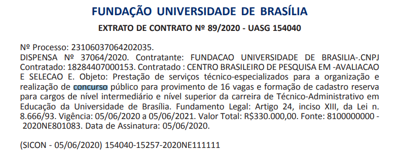 | Concurso | Fundação Universidade de Brasília (concurso FUB) |