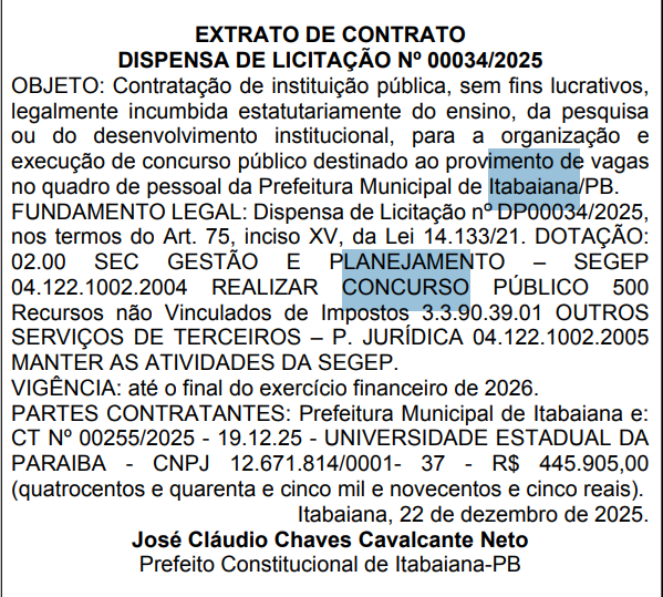 Novidade importante sobre o Concurso Itabaiana PB! A Universidade Estadual da Paraíba (UEPB) foi oficializada como a banca organizadora do novo edital da Prefeitura Municipal.