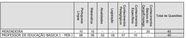| Cargos | Merendeira Professor educação básica I |