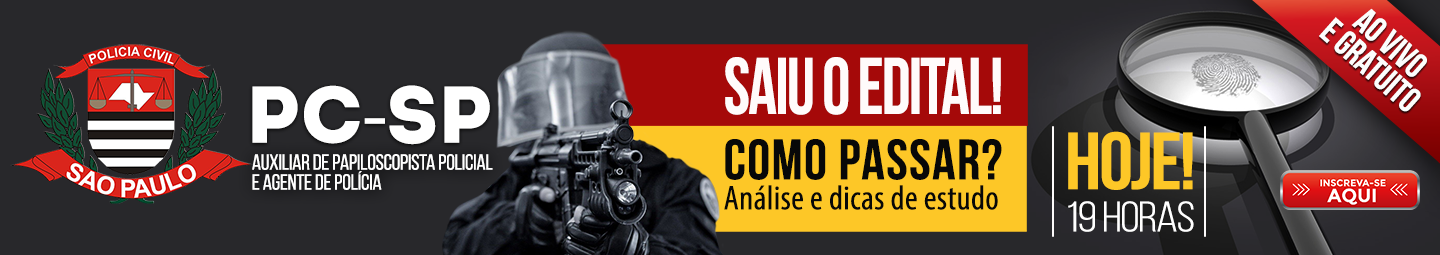 Se você ficou interessado neste novo edital da Polícia Civil de São Paulo, não perca a análise completa do edital Polícia Civil SP, que irá ao ar nesta quarta-feira (03), a partir das 19 horas, pelo canal do Gran Cursos Online no YouTube.