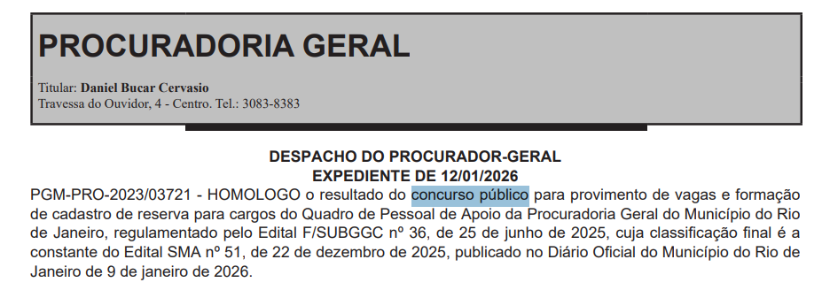 | Edital PGM RJ Procurador | Procuradoria Geral Municipal do Rio de Janeiro. |