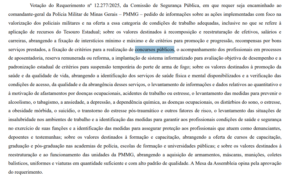 - ALMG envia requerimento sobre previsão de novos concursos: 23/09/2025