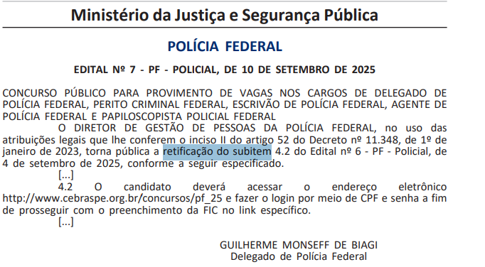- 25/04/2025: Edital do concurso PF Administrativo publicado