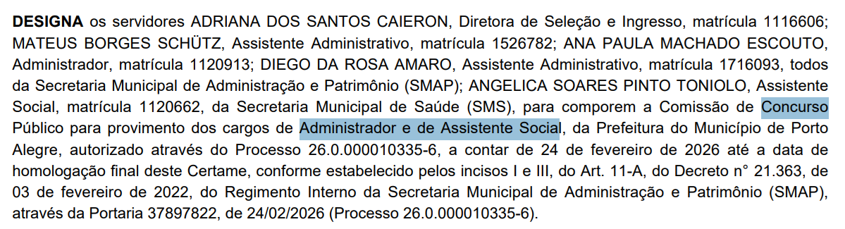 Um novo concurso Concurso Porto Alegre RS está próximo! Nesta quarta-feira, 25 de fevereiro de 2026, foi formada a comissão responsável pelo novo edital da Prefeitura Municipal.