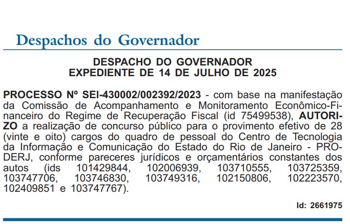 O concurso Proderj tem edital previsto para 2025, concurseiro. O novo concurso do Centro de Tecnologia da Informação e Comunicação do Estado do Rio de Janeiro (Proderj) avançou mais uma etapa. A banca IBDO foi contratada para organizar e planejar o próximo edital.