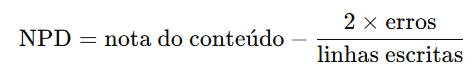 A nota da prova discursiva (NPD) é calculada com base no conteúdo apresentado (NC) e nos erros cometidos (NE).
