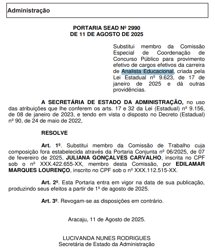 A Seduc SE tem edital de concurso público previsto para 2025.