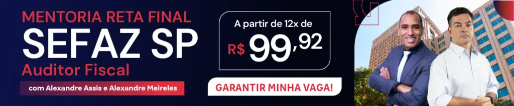 Participe da Mentoria Sefaz SP 2025! A live de apresentação será nesta quinta-feira (27/11), às 21h, no canal do YouTube do Gran, com os mestres Alexandre Meirelles e Alexandre Assis: