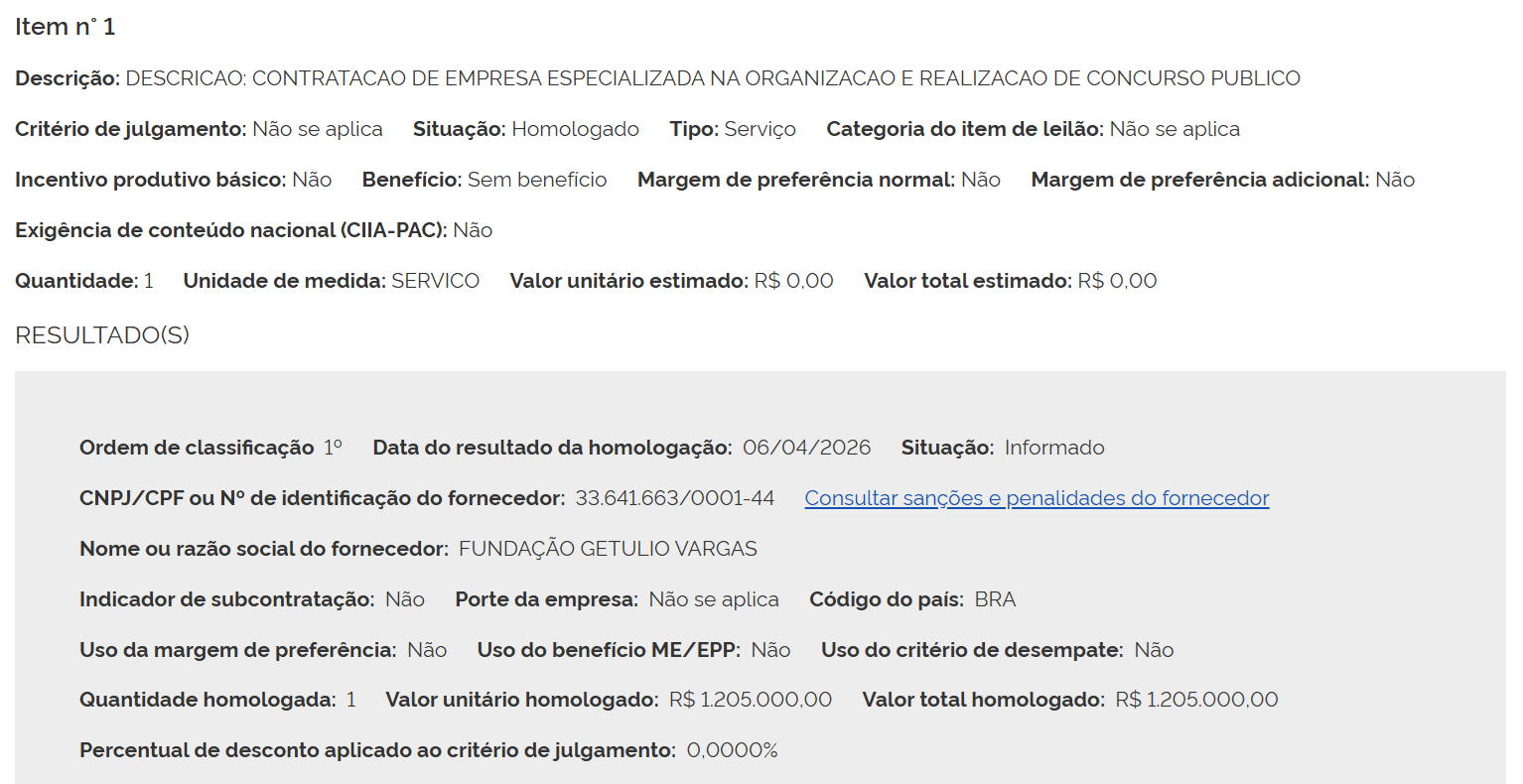 | Banca organizadora | Fundação Getúlio Vargas (FGV) |