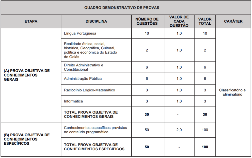A avaliação objetiva a SES GO será composta por um total de 80 questões de múltipla escolha, com 5 alternativas cada (A, B, C, D e E) e apenas uma resposta correta. A pontuação total máxima que pode ser alcançada nesta fase é de 130 pontos.