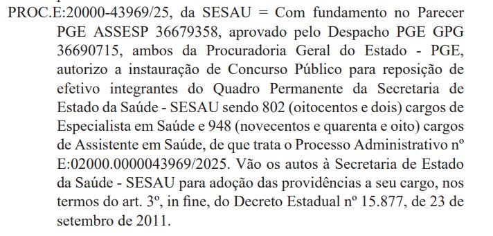 A instauração do processo (conforme documento oficial recente) é o marco zero de qualquer seleção pública. Isso significa que o governo já está analisando o impacto financeiro, o quadro de vagas e as especialidades que serão contempladas no novo concurso SESAU AL.
