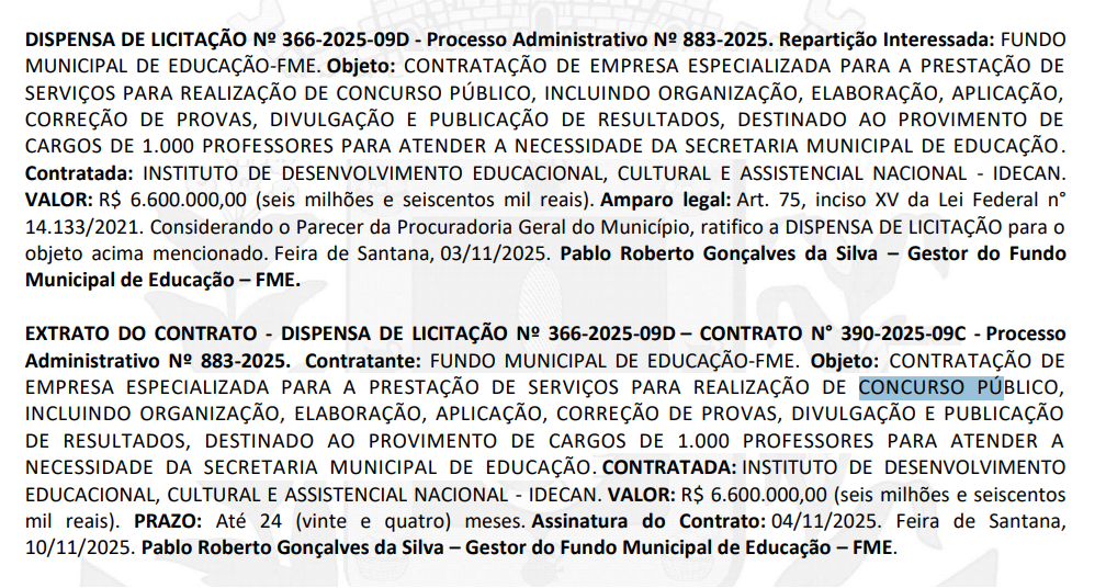 O Concurso SME Feira de Santana BA está cada vez mais próximo! Nesta terça-feira, 11 de novembro de 2025, foi contratada a banca organizadora do novo edital Secretaria Municipal de Educação.