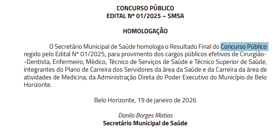 | Edital SMS BH MG | Secretaria Municipal de Saúde de Belo Horizonte |