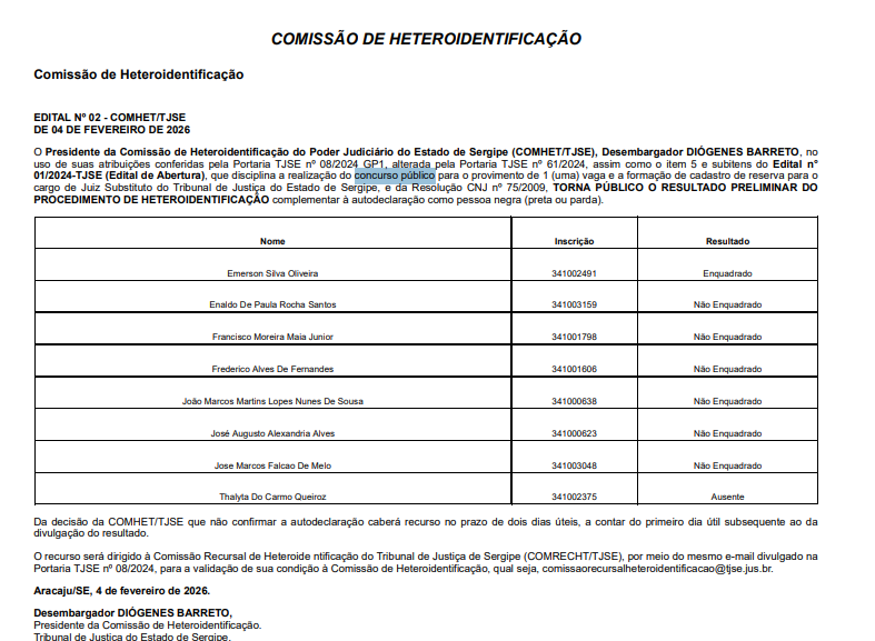 - 04/02/2026 – Resultado do procedimento de heteroidentificação