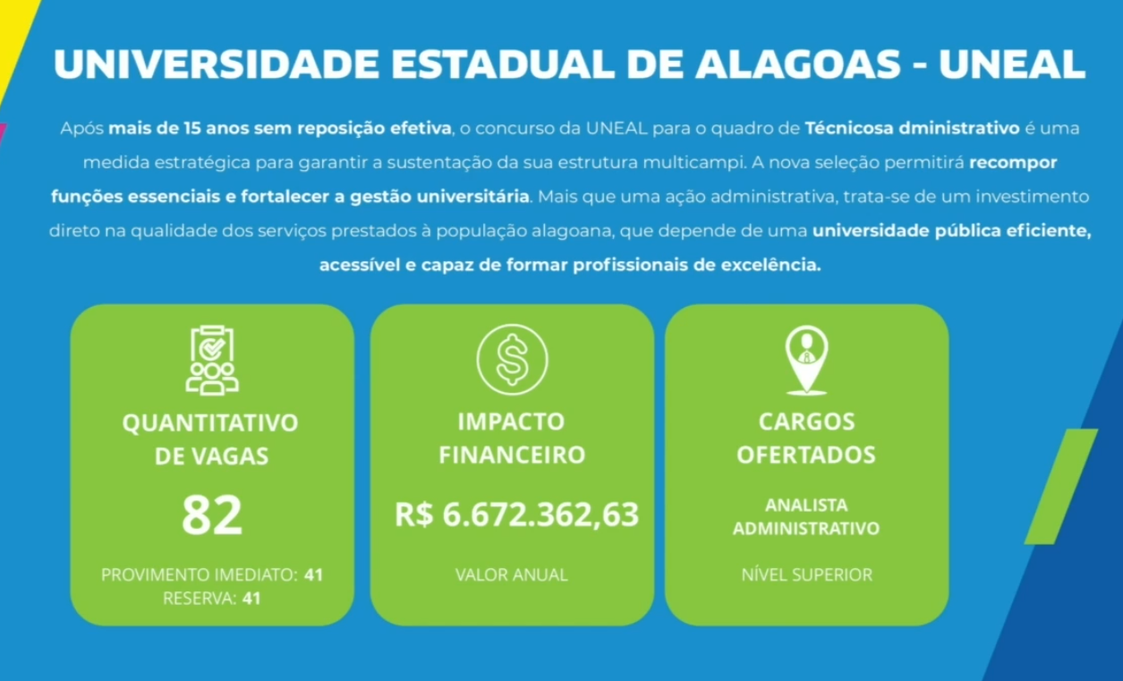 O próximo edital de concurso público da Uneal ofertará 209 vagas em 2025.