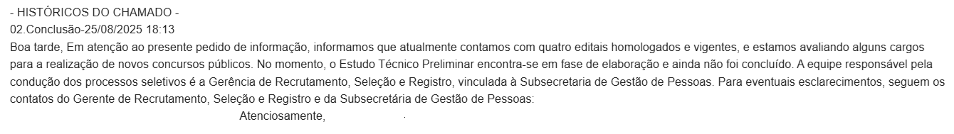 Confira a resposta oficial da assessoria: “Estamos avaliando alguns cargos para realização de novos concursos públicos. No momento, o Estudo Técnico Preliminar encontra-se em fase de elaboração e ainda não foi concluído.”