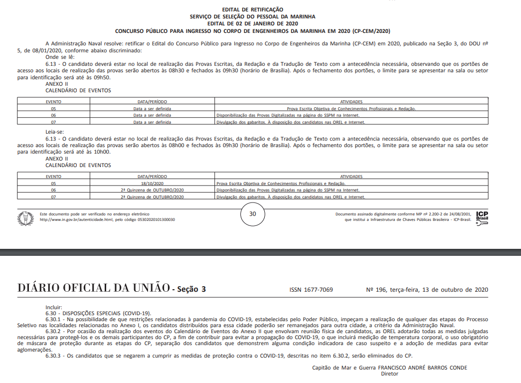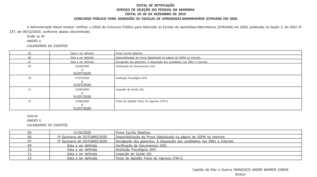 No caso dos candidatos à Escola de Aprendizes-Marinheiros, o calendário ficou da seguinte maneira: