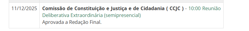 Confira na imagem logo abaixo a aprovação da Comissão do CCJC: