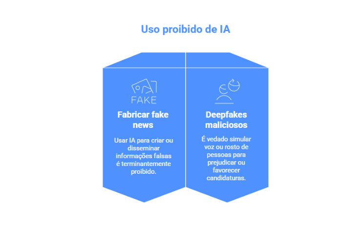 - Deepfakes maliciosos: É vedado simular voz ou rosto de pessoas para prejudicar ou favorecer candidaturas