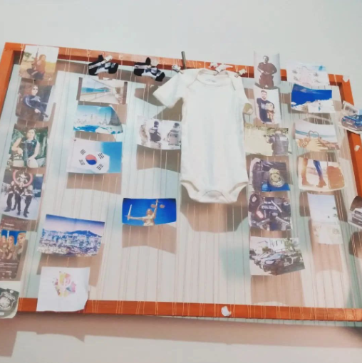 A primeira roupinha de Maya foi pendurada ali como fonte de motivação para a mãe.