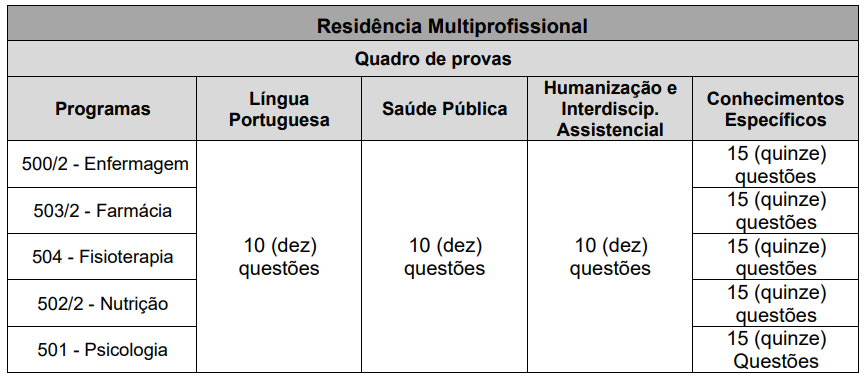 | Cargos | Residente (Enfermagem, Farmácia, Nutrição, Psicologia e Fisioterapia) |