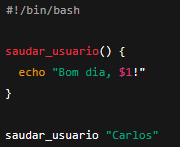 O valor “Carlos” é passado como argumento e capturado por $1, exibido dentro da função. Se houvesse outro parâmetro, seria capturado por $2, e assim por diante.
