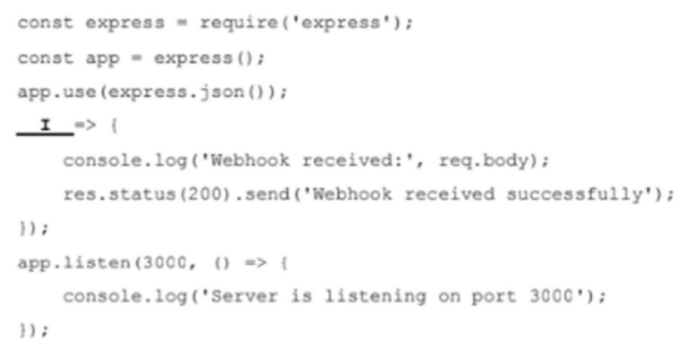 Para receber e processar requisições http post para o endpoint /webhook é necessário que a lacuna I seja corretamente preenchida por
